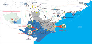 Cảng Hải Phòng 40 km 50 phút Thành phố Thái Bình 25 km 35 phút Trung tâm thành phố Hà Nội 130 km 160 phút Sân bay Nội Bài 160